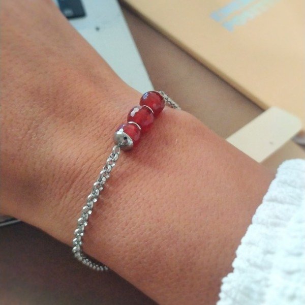 Pulsera 100% acero quirúrgico con 3 piedras roladas cornalina de 8 mm de diámetro ideal para proteger y todo lo que requiera activar con claridad y enfoque.
