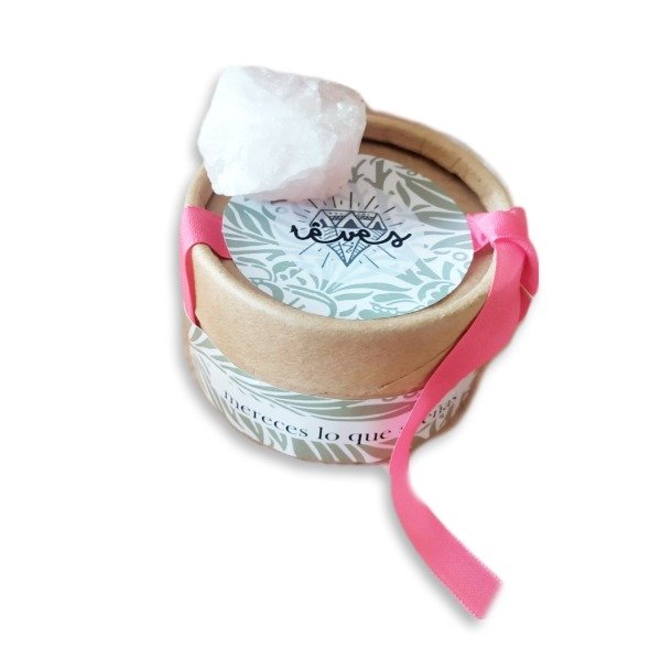 * Una piedra cuarzo rosa grande aprox 7 cm de diámetro en caja tubo cerrada con librito de los beneficios de la piedra para colocar en ambiente.