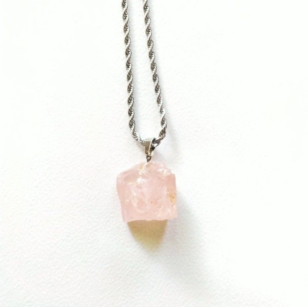 *Un colgante cuarzo rosa en bruto 100% acero quirpurgico hipoalergénico e inoxidable 50 cm de largo en sobre que incluye librito info de la piedra+ indicaciones para su cuidado, limpieza y programación.